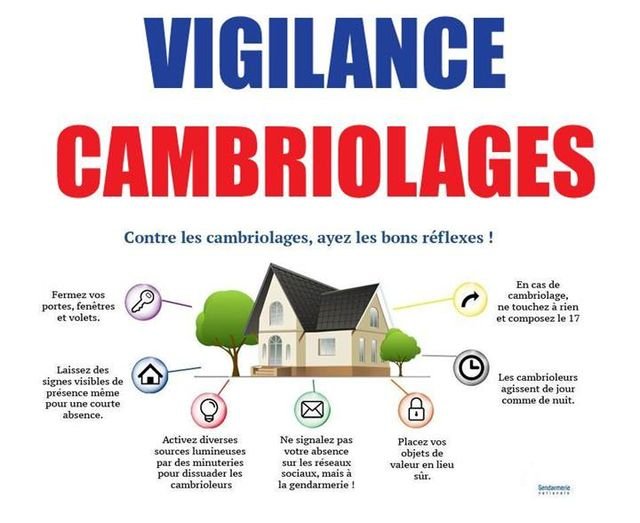 – En cas d’effraction, prévenir immédiatement la gendarmerie via le numéro d’urgence « 17 » sans rien toucher afin de préserver les traces et indices.