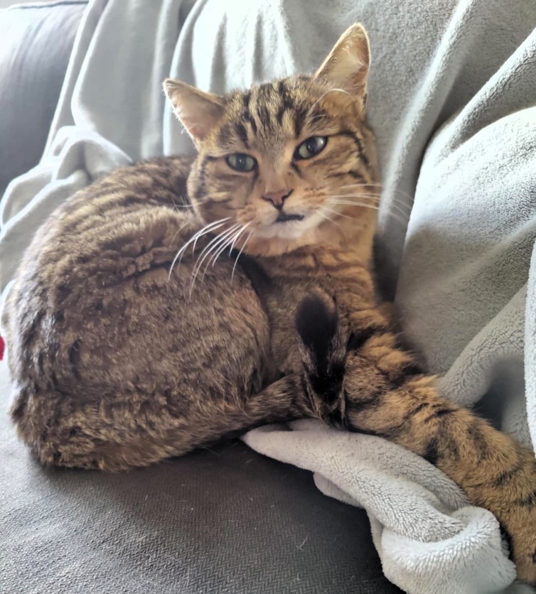 Agé de 5 ans, il est tigré avec une silhouette « moyenne ». Il est castré et a une puce électronique.