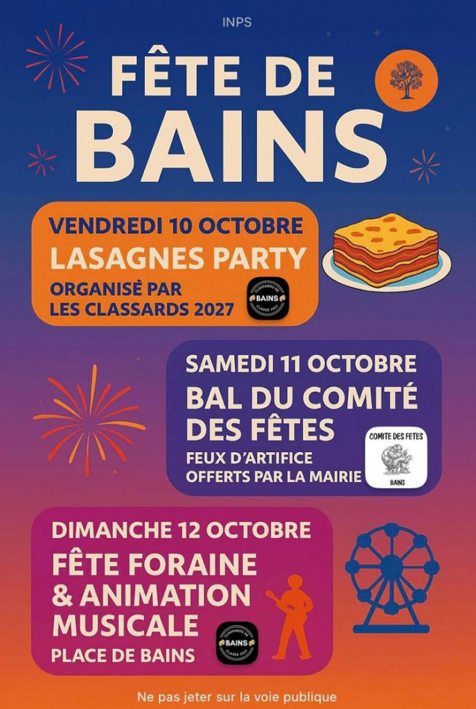 Le week-end du 10 au 12 octobre se déroulera la vogue de Bains.