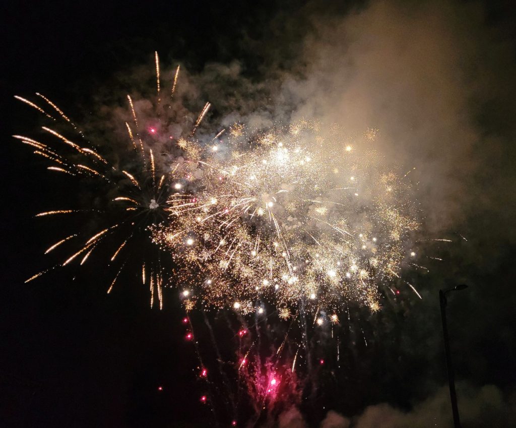Après le défilé dans les rues de Bains, les familles se rassemblaient devant le garage communal pour admirer le très brillant feu d’artifice offert par la municipalité.