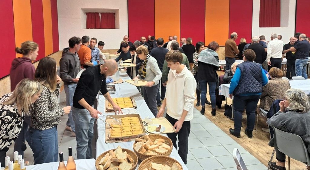 Le samedi 6 décembre, à l’occasion d’une soirée festive organisée par l’USBSC, le club de foot réunissait un peu plus d’une centaine de personnes autour d’un repas aligot-saucisse. L’aligot, préparé sur place par la SARL Aubrac Aligot, producteurs du secteur de Laguiole, contribuait largement au succès de la soirée et était particulièrement apprécié.