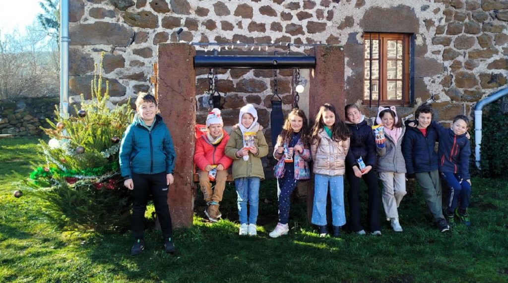 Mi-décembre, les enfants de Ramourouscle se réunissaient devant l’assemblée du village pour la décoration du sapin de Noël.