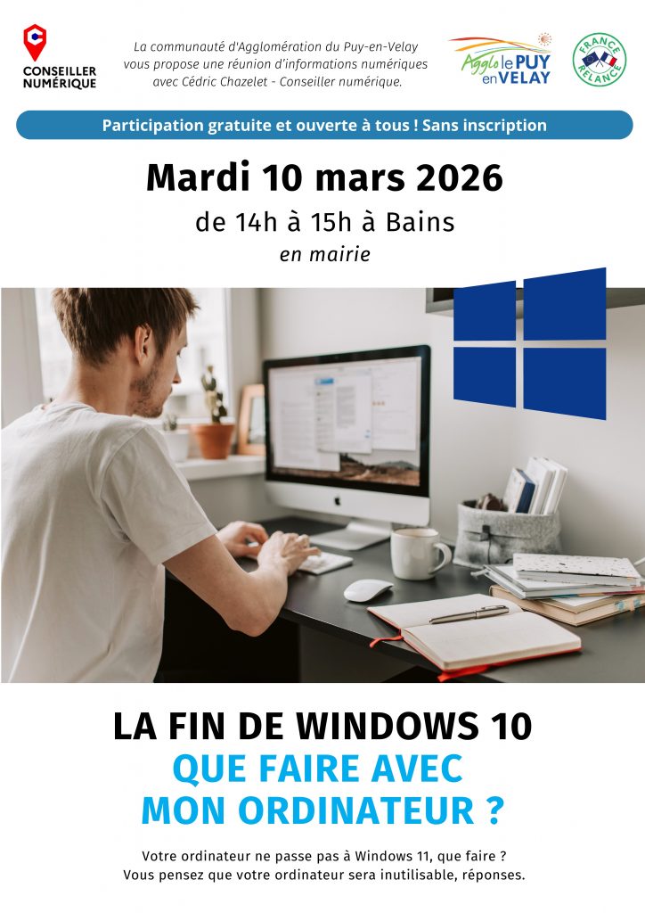 La communauté d’agglomération du Puy-en-Velay vous propose une réunion informations numériques, animée par Cédric Chazelet, sur la fin de Windows 10.