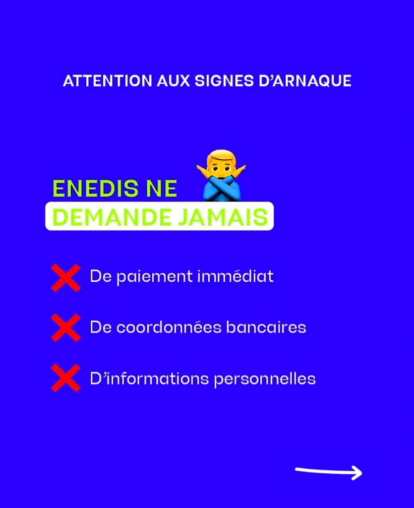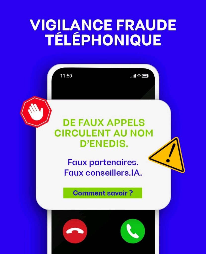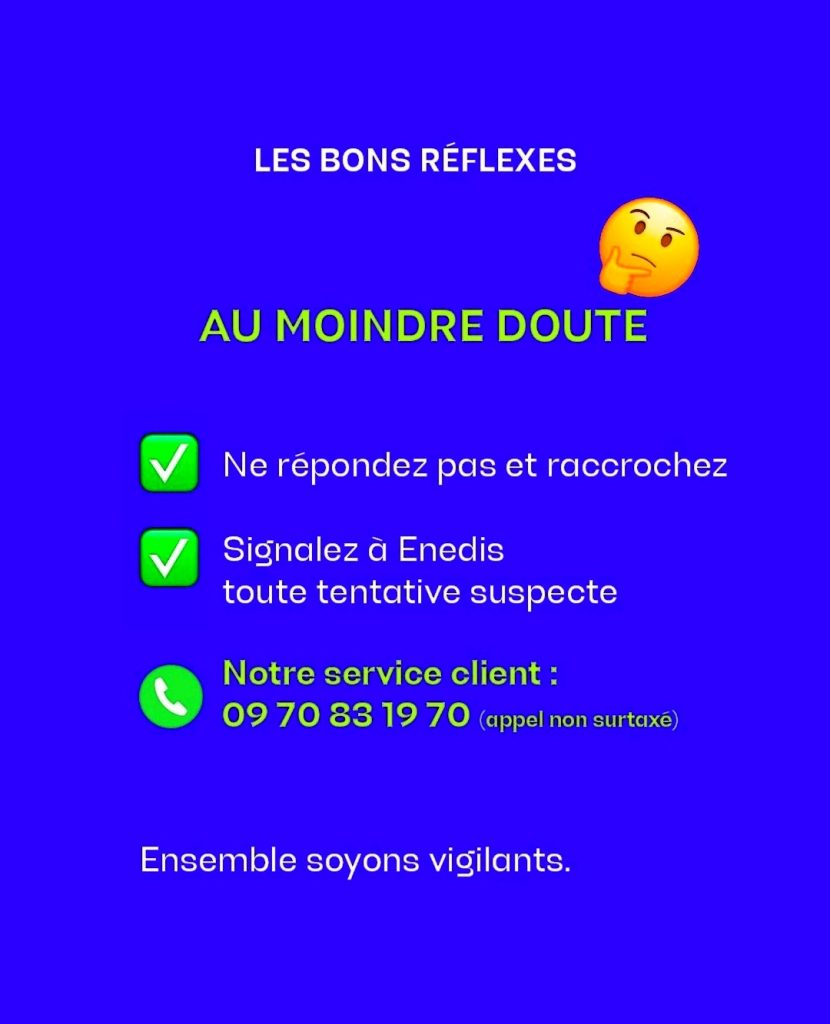 Enedis appelle ses clients à la plus grande vigilance et rappelle que :