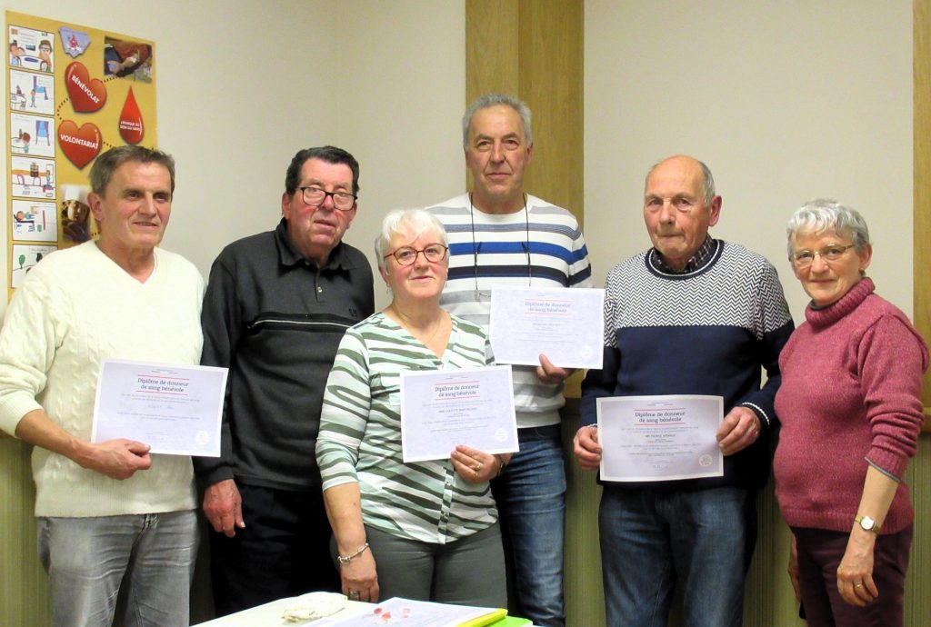 La fin de cette Assemblée était marquée par la remise de diplômes de différentes catégories, à souligner 2 diplômes de 4e niveau équivalent à 75 dons et un de 6ème niveau pour 100 dons attribué à notre Présidente. Des félicitations étaient adressées à tous ces donneurs.