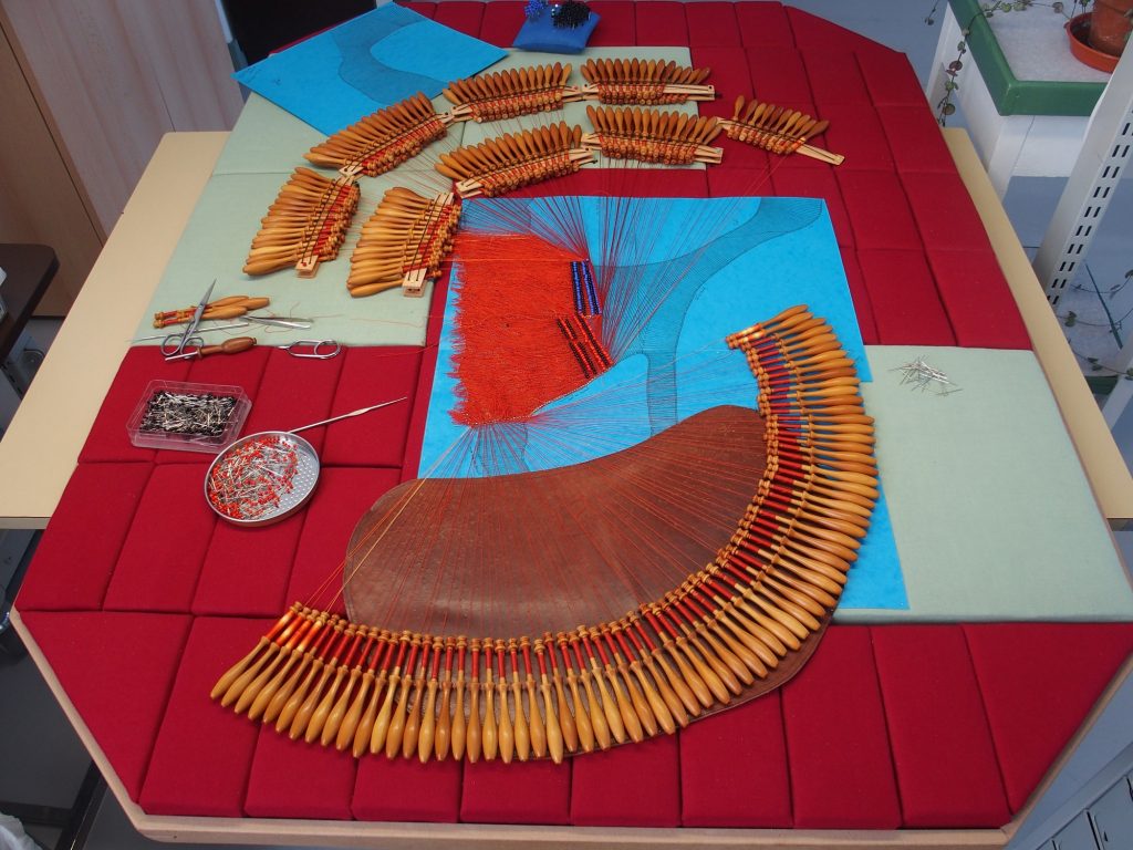 L’atelier conservatoire de dentelle dépend du Mobilier National, lui-même rattaché au Ministère de la Culture. Cet atelier a pour rôle de perpétuer et maintenir les techniques de la dentelle aux fuseaux. C’est un atelier d’excellence qui s’ouvre sur la modernité en mettant les savoir-faire traditionnels au service d’œuvres d’artistes contemporains (dessins, peintures, concepts de design, maquette en 3D…).