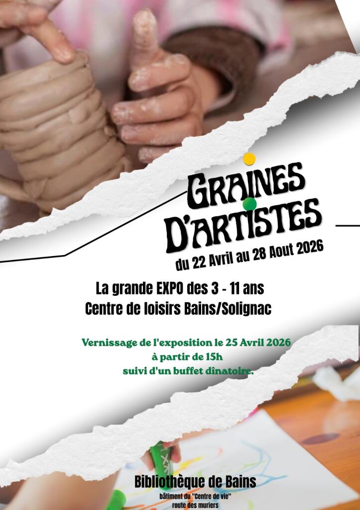 L’accueil de loisirs de Bains/Solignac géré par l’Association Ville Auvergne organise le vernissage de l’exposition « Graines d’artistes » regroupant plusieurs dizaines d’œuvres d’enfants à partir de 15h le samedi 25 avril.