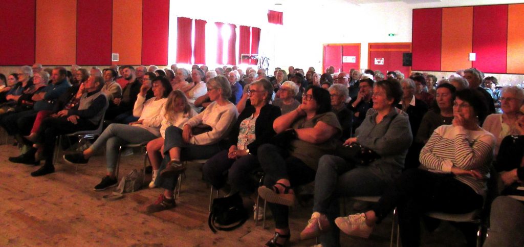 Plus de 100 personnes prenaient place afin de suivre toutes les péripéties de « Bibiche, on va rater l’avion ». Une interprétation jouée avec brio par les nombreux acteurs et un moment de franche rigolade et de bonne humeur pour le public qui appréciait le déroulement plein d’humour de la pièce.